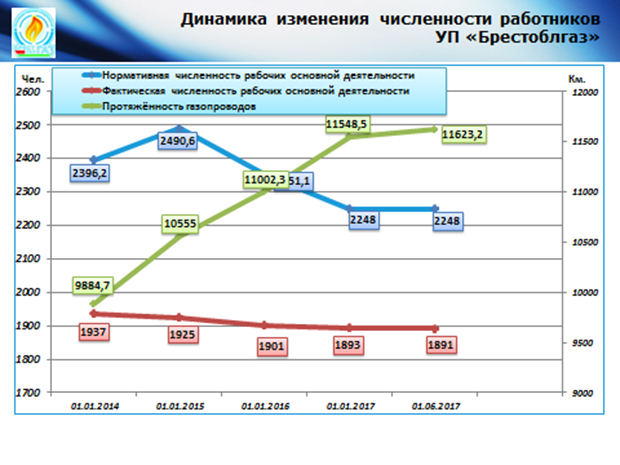Так, была проведена оптимизация штатной численности Ружанского участка Пружанского РГС ПУ «Кобрингаз» за счет ликвидации аварийно-диспетчерского участка с 01.05.2017. Работники участка были переведены в другие службы, испытывающие дефицит кадров для выполнения производственных заданий.