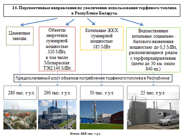 В целях увеличения объемов потребления торфяного топлива организациями ЖКХ необходимо продолжить сотрудничество с облисполкомами по строительству и реконструкции теплоисточников с переводом их на торфяное топливо. Отношение местных властей к торфу в последние годы улучшилось благодаря уже имеющимся примерам эффективного использования торфяного топлива на котельных ЖКХ Ошмяны, поселка Вежи и в цементной отрасли.