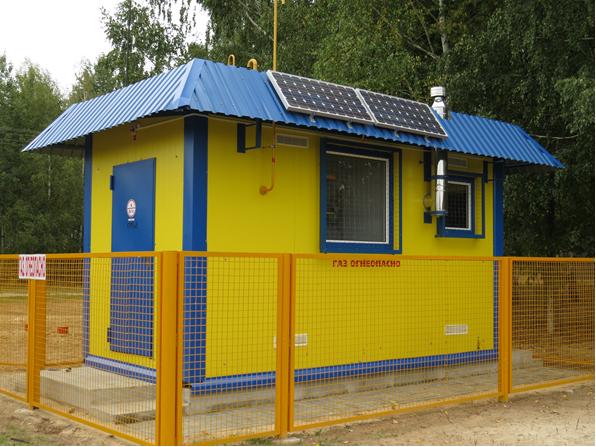 Получив положительный опыт эксплуатации таких устройств на шкафных газорегуляторных пунктах, в 2015 году РПУП «Гомельоблгаз» в качестве эксперимента оснастило одно ГРП фотоэлектрическим источником энергии, обеспечивающим электрической энергией не только системы телеметрического контроля, но и источники электрического освещения помещений ГРП. В данном случае был получен полноценный источник электрической энергии для двух уровней напряжения - 12 В и 220 В. В целях снижения нагрузки на автономный источник электрической энергии в качестве источников света были использованы светодиодные лампы.