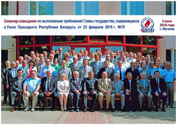 3 июня текущего года в г. Могилеве на базе РУП «Могилевоблгаз» государственным производственным объединением «Белтопгаз» проведен семинар-совещание с руководящими работниками и специалистами газоснабжающих организаций по вопросам практической реализации требований Главы государства, содержащихся в Указе Президента Республики Беларусь от 23 февраля 2016 г. № 78 «О мерах по повышению эффективности социально-экономического комплекса Республики Беларусь».