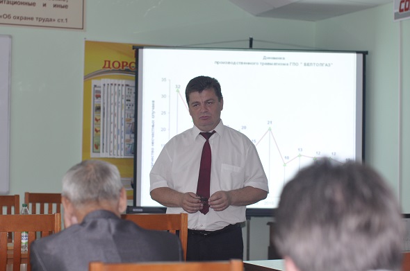 Открывая стажировку директор ПУ «Гомельгаз» Левинский И.А. обратился к участникам с приветственным словом и проинформировал участников об организации работы и состоянии охраны труда непосредственно на рабочих местах в управлении. Он отметил, что самое главное – это здоровье наших работников.