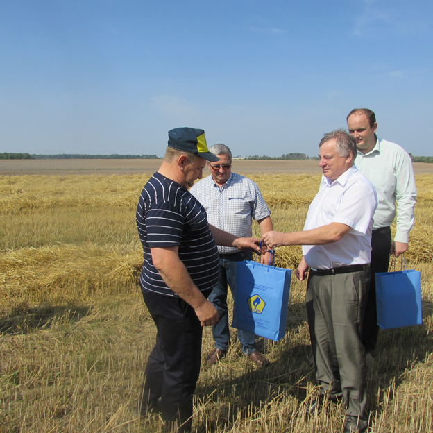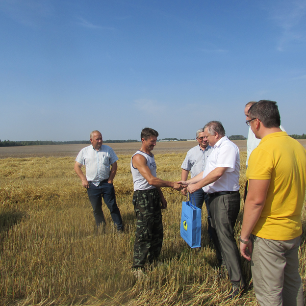 В субботу 19 августа поздравить передовиков хлебной нивы с тысячным намолотом прямо на поле приехали исполняющий обязанности генерального директора - главный инженер УП «МИНГАЗ» Шавловский Д.В. и председатель Вилейского райисполкома Кот В.И.