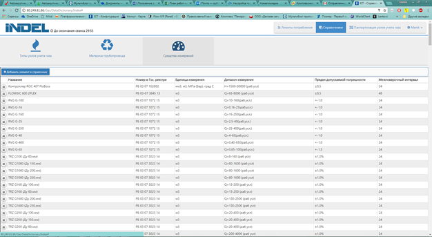 Помимо возможности опроса и составления отчетности о параметрах потребленного газа в системе реализован общий справочник, в котором содержится полная информация по разделам: «Типы узлов учета», «Материалы трубопровода», «Средствах измерения». Выполнена паспортизация узлов учета газа.