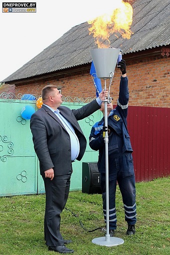 Директор филиала ПУ «Речицагаз» РПУП «Гомельоблгаз» Дмитрий Воробей поздравил со знаковым событием жителей Ребусы и напомнил, что, помимо комфорта, газ таит в себе  и опасность.