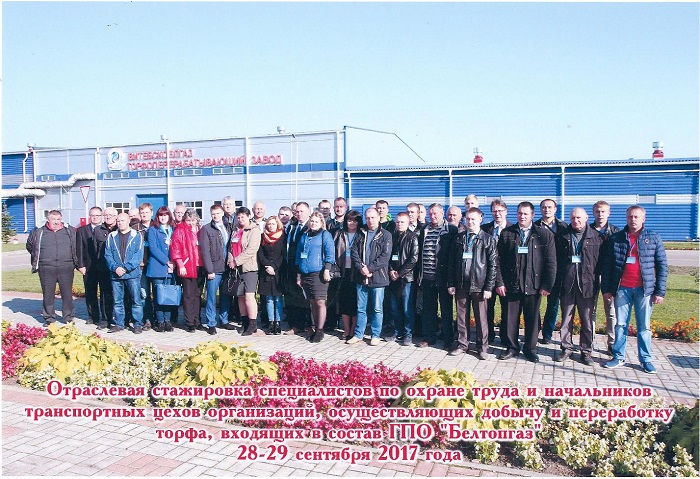 На базе филиала ПУ «Витебскторф» УП «Витебскоблгаз» 28-29 сентября 2017 года прошла отраслевая стажировка специалистов по охране труда и начальников транспортных цехов организаций, осуществляющих добычу и переработку торфа, входящих в состав ГПО «Белтопгаз».