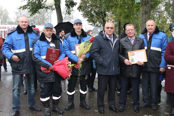 Чествовали на празднике отличившихся строителей. За добросовестный труд, высокое профессиональное мастерство, своевременное и качественное выполнение строительно-монтажных работ при строительстве объекта Почетной грамотой Могилевского областного исполнительного комитета награжден машинист экскаватора РУП «СПМК Газстроймонтаж» Виктор Федорович Портненко, благодарность Могилевского областного исполнительного комитета вручена директору РУП «СПМК Газстроймонтаж» Николаю Михайловичу Долбне. Начальнику отдела капитального строительства РУП «Могилевоблгаз» Максиму Викторовичу Катковскому и трактористу ОАО «Могилевгазстрой» Михаилу Владимировичу Козлову вручены грамоты Хотимского районного исполнительного комитета, а сварщик пластмасс РУП «СПМК Газстроймонтаж» Владимир Михайлович Рубинчик отмечен благодарностью Хотимского районного исполнительного комитета.