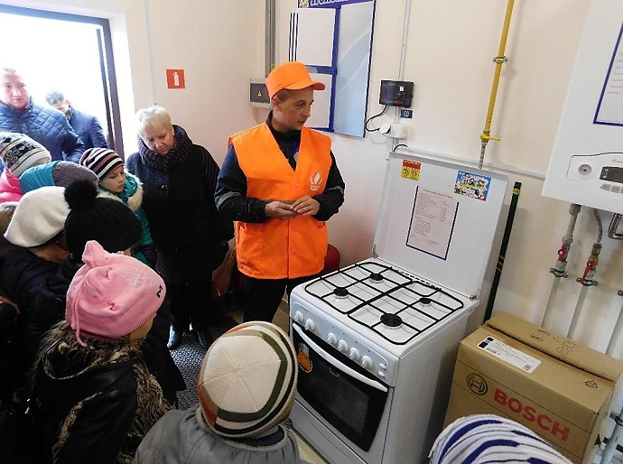 На учебно-тренировочном полигоне ребята увидели, как работает аварийная бригада при утечке газа. На практике познакомились с правилами пользования газа в быту: узнали, как правильно обращаться газовой плитой, с какого возраста можно пользоваться газовой плитой самостоятельно.