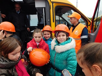 Школьников ознакомили с автомобилем специального назначения аварийно-диспетчерской службы ПУ «Мозырьгаз». Каждый ребенок смог примерить защитную каску, увидеть, как выглядит аварийная машина изнутри, посмотреть ее оборудование, посидеть за рулем автомобиля. Одним словом, почувствовать и представить себя в роли работника АДС.
